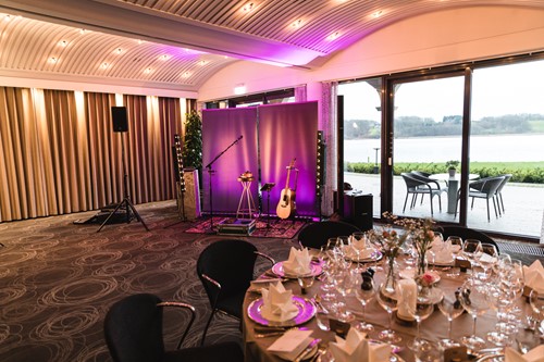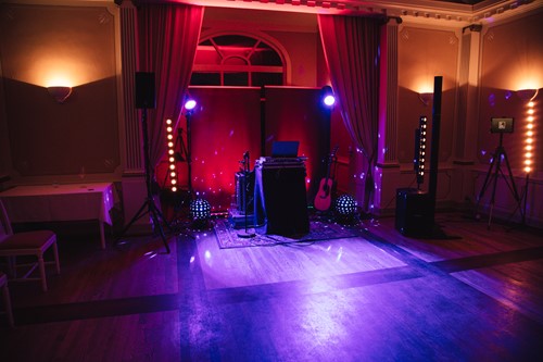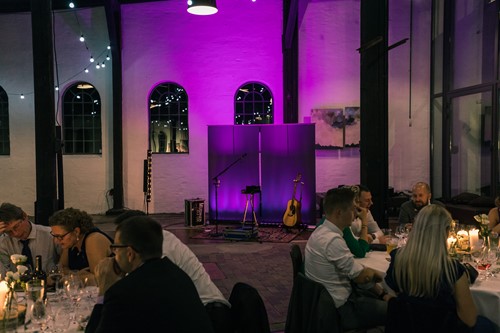Under spisningen kører jeg med stilfuldt, afdæmpet og stillestående lys, så gæsterne kan se mig uden at det skal tage for meget opmærksomhed. Når jeg spiller op til dans som DJ er min opsætning lidt mere prangende. Her får lyset en større rolle og jeg sørger for at lægge op til et brag af en dansefest. Jeg har et enkelt set-up, og kan derfor tilpasse mig festlokalet ligegyldigt hvordan det ser ud.